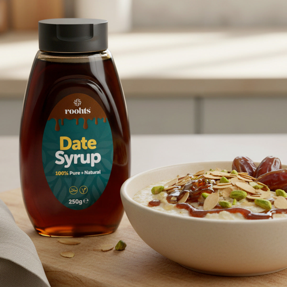 Our organic dark date syrup, made from luscious sun-ripened Barhi dates, adds a bold, caramel-like sweetness that takes your talbina to the next level. Thick, velvety, and packed with natural goodness - it’s the perfect drizzle for a rich, energising start.
